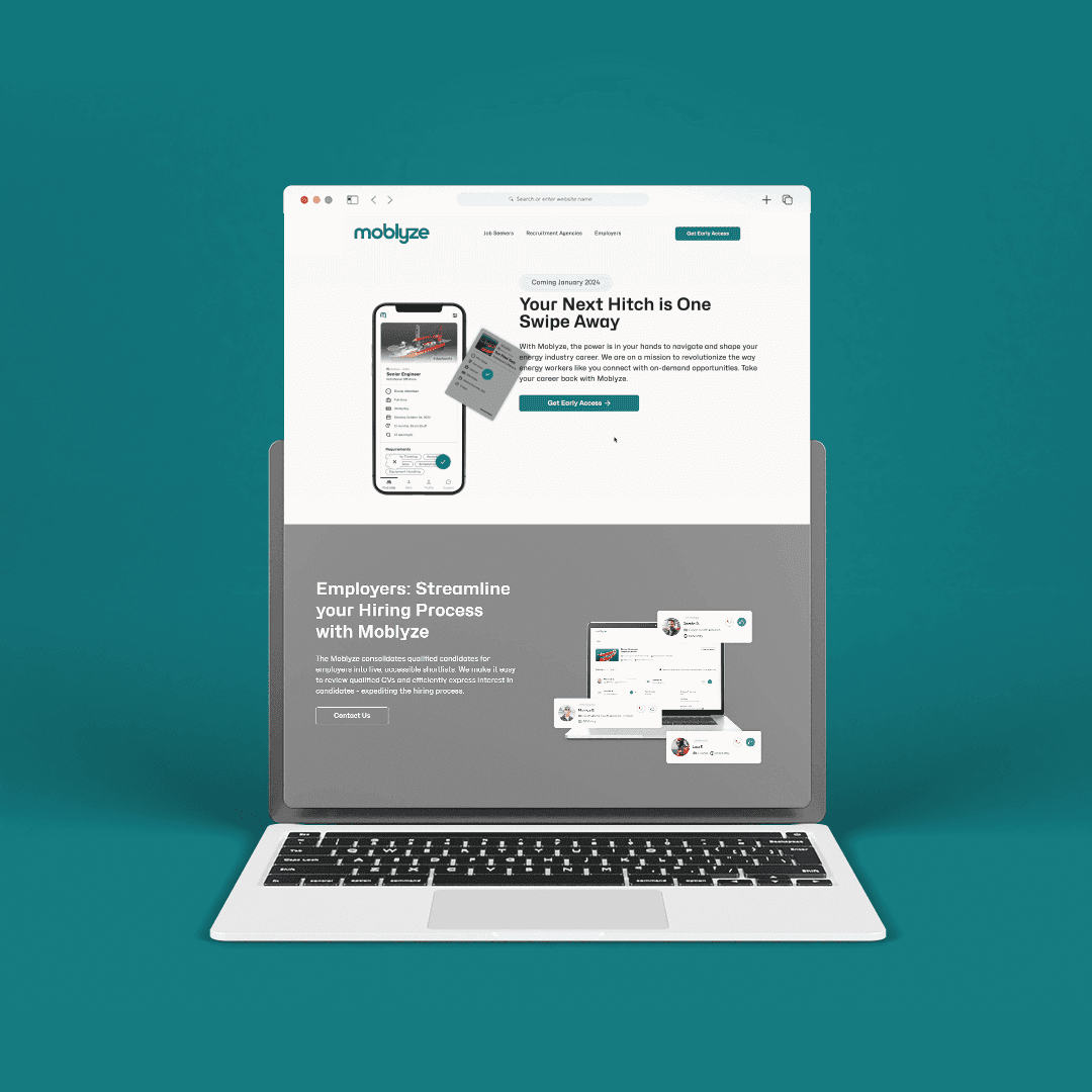 Moblyze, a marketplace connecting energy workers with job opportunities, came to us with a fragmented MVP built by freelancers. The UX was confusing, the UI inconsistent, and the brand lacked cohesion. They needed a product design team to redefine the experience and partner with engineering to bring it to market—fast.